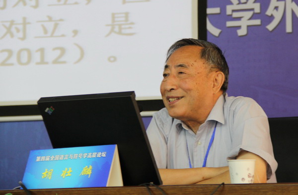中国语言与符号学研究会会长、北京大学博士生导师胡壮麟教授做了题为“论当代符号学研究的学科地位”的主旨发言。胡壮麟教授高度概括了符号学的作用、地位及其学科地位,并指出符号学的最终目的不是为了符号而研究符号,而是为了使人类能更好地相互交际、更好地认识世界。胡壮麟教授的发言既有广阔的理论视野,又有自己独到精深的研究,开阔了与会代表的研究思路,为繁荣符号学这一学科指明了方向。