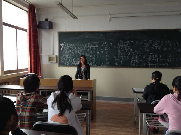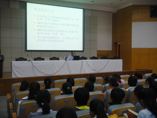 董晓华老师介绍了翻译专业的创办历史、师资队伍、专业竞赛、培养目标、学分学制、考研率等等。杨晓红老师主要从晨读制度、三个工程、专业竞赛、课程学习方面给翻译系学生作了介绍并给予了希望。学院实行晨读制度,通过晨读学生能不断提高口语和听力水平,还能培养学生坚持不懈追求卓越的习惯。学院实行的“三个一工程”,即读一本书、看一部电影、听一次讲座,旨在培养学生宽广的知识面,提高学生的审美水平,培养学生的科研素质。各项翻译专业竞赛给学生提供展示自我的平台,考验学生的翻译能力和素质,也通过竞争和合作提高学生的协作能力。最后,杨晓红老师希望新生们能尽快适应环境,融入集体,抓紧时间,努力学习,成长成才。