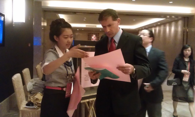 礼仪志愿者与欧洲E.V.新商会交响乐团指挥在会展中心合影