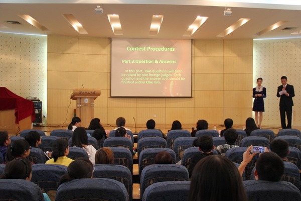 2013年9月21日下午2:30,由外语教学与研究出版社主办、williamhill英国威廉希尔教务处及威廉希尔体育官方网站承办的2013年“外研社杯”全国英语演讲大赛williamhill英国威廉希尔复赛在逸夫图书馆学术报告厅举行。本次大赛邀请了威廉希尔官网白丽梅教授、蔡兰珍教授、靳琰教授、王琦教授、俞婷教授和在我校任教的外籍教师Megan、Jade Sun等七位专业人士担任评委。通过初赛海选、从110多位报名者中脱颖而出的23名选手参加了本场比赛。
