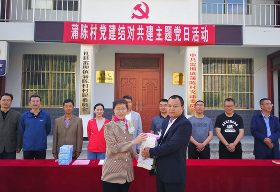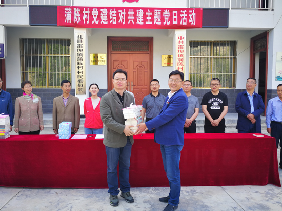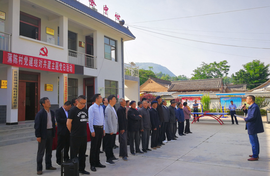5月24日,williamhill英国威廉希尔蒲陈村帮扶工作组组织威廉希尔体育官方网站、历史文化学院6名教师党员干部、3名驻村帮扶党员干部和国旗班4名学生,深入蒲陈村开展党建结对共建主题党日活动,这是继前段时间帮扶工作组成功举办“国培计划(2019)”甘肃省精准扶贫礼县英语教师培训班之后的又一重要帮扶活动。礼县雷坝镇党委书记杨宇琛、镇长马继军及部分干部,雷坝学区初级中学、中心小学负责人,蒲陈村党支部书记蒲旭东、村主任王红来及蒲陈村全体党员参加。