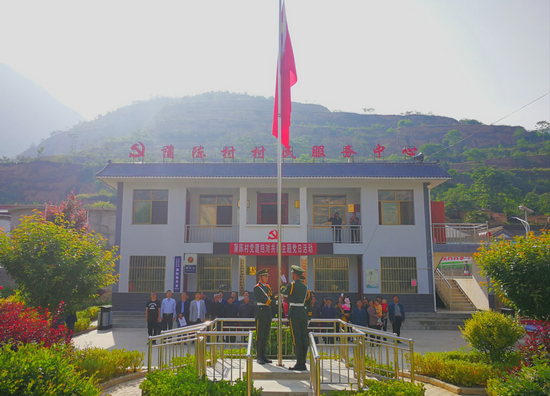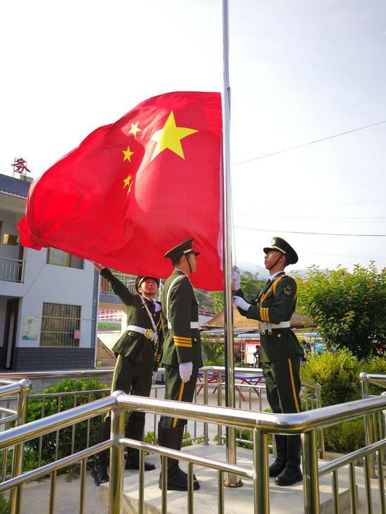 上午8时,雄壮的国歌声在蒲陈村的群山中响起,williamhill英国威廉希尔国旗班旗手迎着朝阳、迈着铿锵有力的步伐走向旗台,升旗手振臂一挥,鲜艳的五星红旗迎风展开冉冉升起。蒲陈村驻村帮扶工作队队长兼第一书记李喜平代表全体帮扶干部在国旗下讲话,向父老乡亲宣讲党的扶贫政策,进一步坚定蒲陈群众与全国人民同步进入小康的决心和信心。