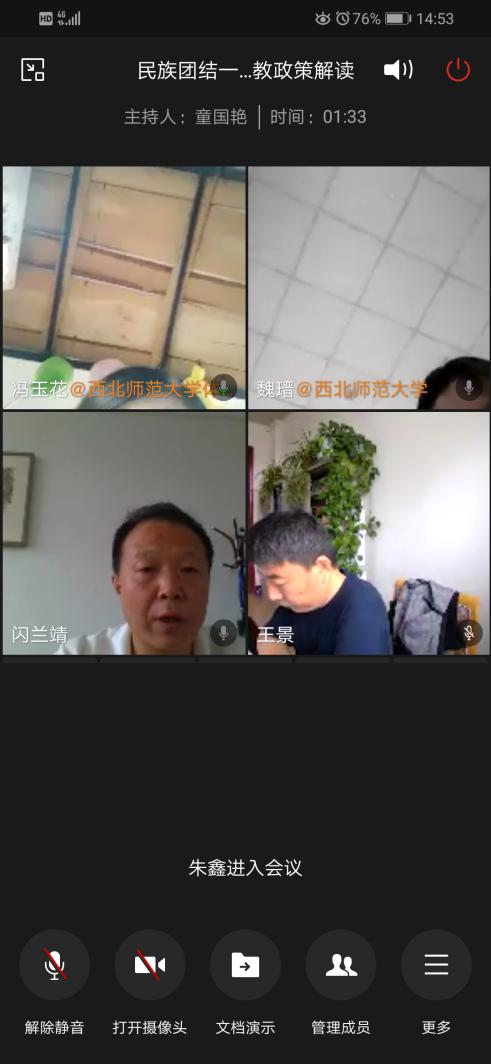 为更好地学习宣传、贯彻落实党的民族宗教政策,2020年6月4日下午,威廉希尔官网邀请马克思主义学院副教授闪兰靖老师,在线开展“民族团结一家亲——中国民族宗教政策解读”学习辅导报告。会议由学院党委书记王景主持,威廉希尔官网全体师生党员、团干部、学生代表参加会议。
