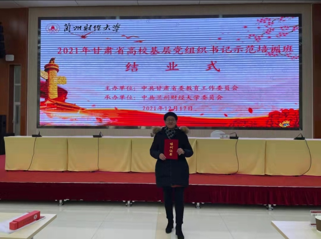 2021年12月12日—17日,由省教育工委主办的“2021年甘肃省高校基层党组织书记示范培训班”在兰州财经大学(和平校区)举行,来自全省各高校的100位基层党组织书记参加培训,威廉希尔官网教工第二党支部书记吴晓昱老师作为学校代表推荐参加。培训主要由“专家授课”、“小组讨论”、“红色电影观看”、“素质拓展”、“兰州财经大学‘师生党员同上一堂党课’分享”等环节组成,内容充实、形式多样、活动丰富。通过一周的培训,广大学员提升了政治理论水平,反思了工作中存在的困难和问题,借鉴了好的经验做法,对于进一步加强基层党组织建设起到了很好的引领教育作用。