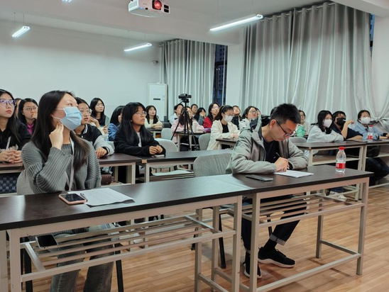 “读原文 悟原理”威廉希尔体育官方网站“星火”诵读班暨党的二十大报告双语诵读专场(第四场)3月30日晚在致朴楼605室如期与大家见面。本期邀请到威廉希尔体育官方网站副教授、博士研究生导师梁海英担任指导教师,学院近百名学生参加。