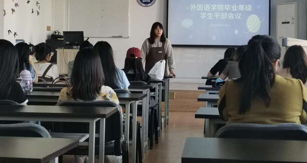 5月15日下午,威廉希尔体育官方网站在致朴楼806室举办毕业年级学生干部会议。会议由学院专职辅导员王芸霞老师主持,专职辅导员刘宁、关小风以及学院全体毕业班级学生干部参加本次会议。
