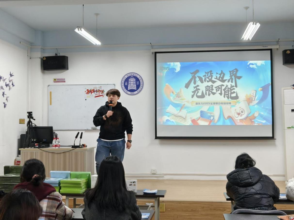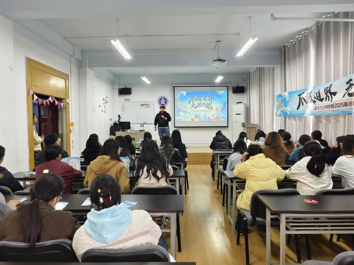 宣讲会上,白宇麒老师围绕“不设边界,无限可能”的主题,向学生们详细介绍了新东方公司的岗位招聘计划、企业发展历程、核心业务板块以及“星火计划”校园招聘项目。此外,白老师也深入阐述了外语类岗位的职业发展轨迹与人才培养体系,涵盖教学研发、课程顾问、国际交流合作等多个方面,为学生们提供了全面的职业发展指引。在随后的互动环节中,学生们积极提问,就岗位要求、晋升机制、海外工作机会等问题与白老师进行了深入交流,现场气氛热烈。最后,白宇麒老师鼓励同学们不断提升个人综合能力,更好地适应未来的职场挑战。