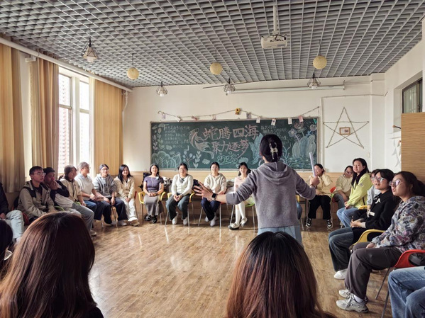 活动中,带领人巧用三人一组的“松鼠搬家”小游戏活跃现场气氛。随后,带领人对同学们进行分组,组织开展“七手八脚”活动,同学们积极参与,现场气氛热烈。在极具挑战性的“解开千千结”团队活动中,同学们从两组合并为一组,面对复杂的“结节”,通过多次尝试与沟通协作,最终成功解开,深刻体会到团队合作的重要性。活动尾声的小组绘画环节,要求组员们集思广益共同完成作品,并推选两名同学分别讲述绘画过程及画作背后的故事。活动不仅考验了同学们的应变能力,更有效增强了团队协作能力。