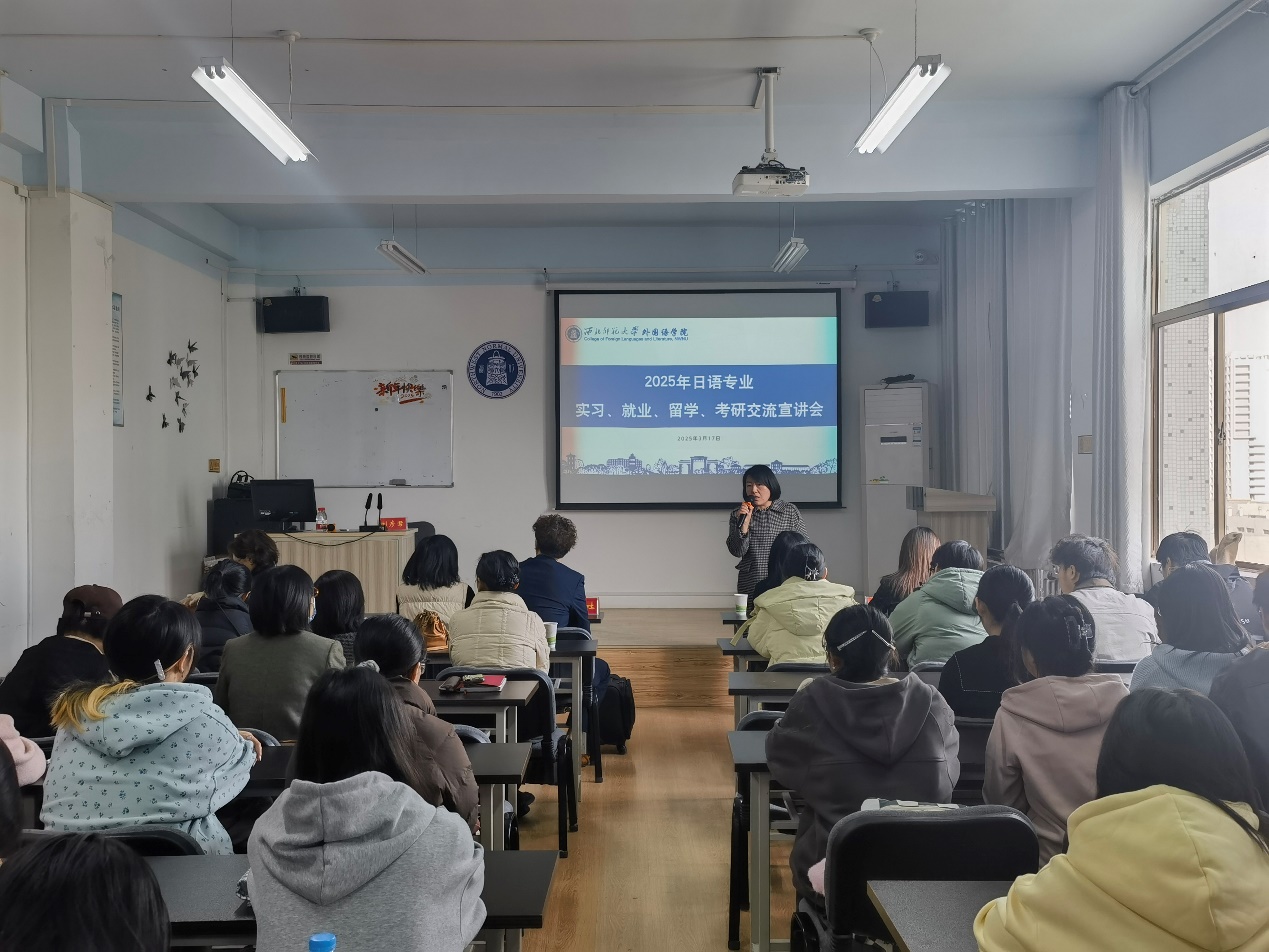 座谈会后,三家用人单位向日语专业2021级、2023级、2024级学生开展了实习、升学及就业宣讲会,向学生介绍了合作项目,与会师生积极参与了宣讲互动。