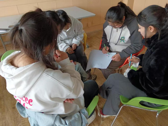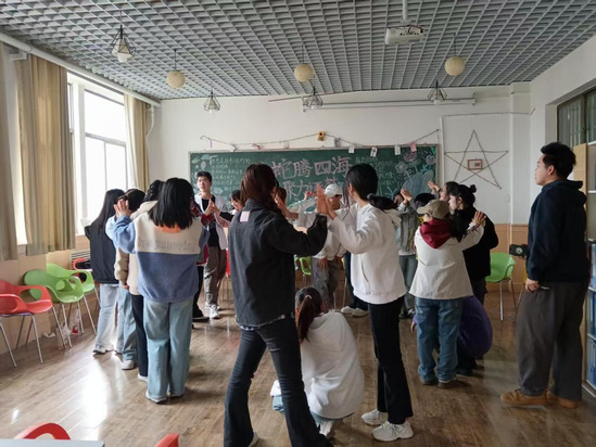 活动中,带领人通过松鼠搬家、拉圈解结、小组绘画三个游戏环节,引导同学们以角色互换、位置转移,调整沟通策略、创新解决方案等互动方式有效打破社交壁垒、实现全员联动、高效解决问题,在强化了同学们团队协作意识的同时进一步考验了同学们的应变能力。