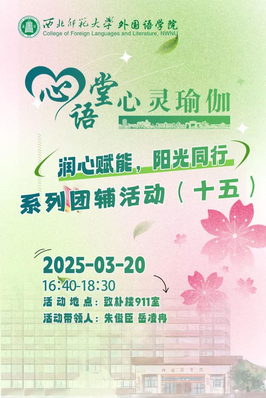 3月20日,威廉希尔体育官方网站“心语堂”心灵瑜伽——“润心赋能,阳光同行”系列团辅活动第十五期在致朴楼911室举办。本期活动由williamhill英国威廉希尔心理健康教育服务中心岳凌冉、朱俊臣带领,2024级英语5班全体同学参加。