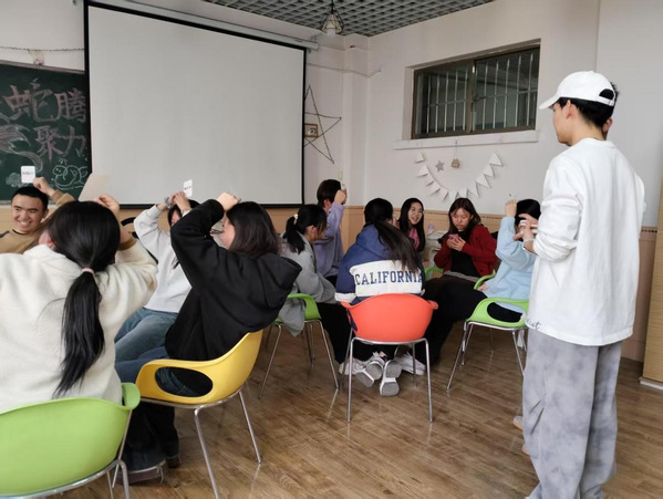 活动中,带领人通过“抓手指”破冰、“卡牌游戏”协作、“心有千千结”解困、“不能做挑战”应变以及“一笔画”共创等环节,引导同学们从沟通交流到团队协作,从个人表达到集体创作,逐步实现人际破壁与思维创新。各游戏环节通过角色代入、规则约束、任务驱动等方式,有效促进了同学们的主动沟通、策略调整与问题解决能力。
