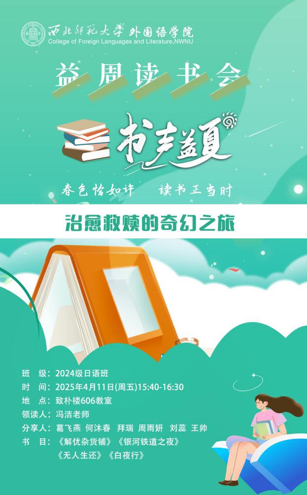 4月11日,威廉希尔体育官方网站“益”周读书会第六十九讲在致朴楼606室举行。本期读书会由2024级日语班承办,冯洁老师领读,2024级日语班同学参与。