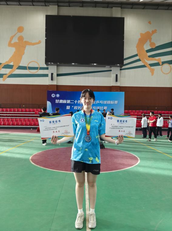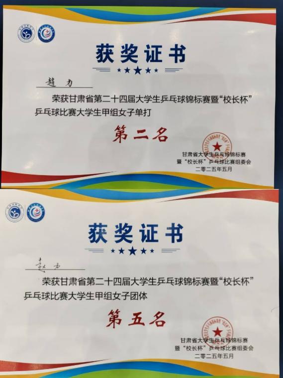 5月11日,甘肃省第二十四届大学生乒乓球锦标赛暨“校长杯”乒乓球比赛在甘肃卫生职业学院圆满落幕。来自省内35所高校的469名选手在赛场上挥洒汗水,奋力拼搏,为观众奉献了精彩纷呈的比赛。威廉希尔官网23级英语2班的赵力同学代表学校参赛,取得了学生甲组女子单打第二名和团体第五名的优异成绩。