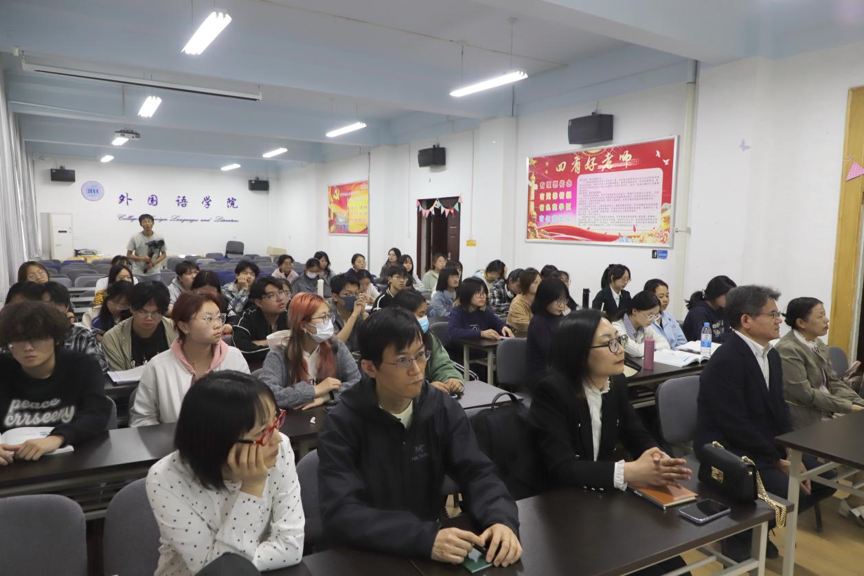 在互动环节,学生们踊跃提问,就日语学习方法、职业发展规划等话题与毋教授展开深入交流。整场讲座内容丰富、见解独到,为日语专业学生的学习提供了宝贵的理论指导和实践建议。