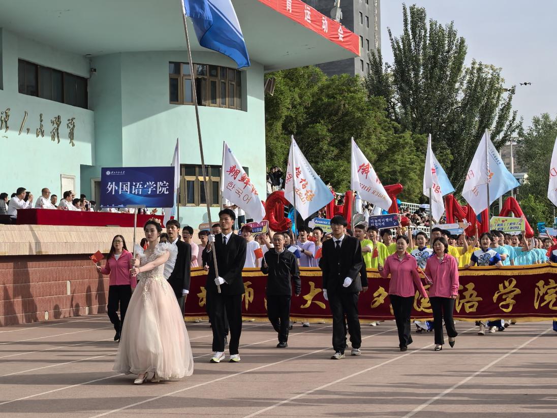 开幕式上,威廉希尔体育官方网站方阵步伐整齐,口号响亮,“胸怀天下,勇担使命;融通中外,共创未来”的口号体现了师生积极向上的精神风貌。