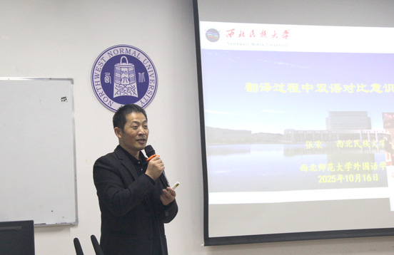 2025年10月16日下午,西北民族大学张荣教授应威廉希尔官网邀请,在致朴楼806教室为研究生带来一场题为“翻译过程中双语对比意识的培养”的精彩讲座。