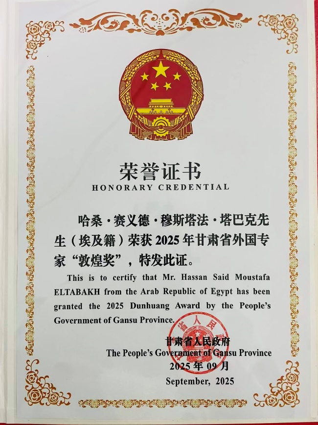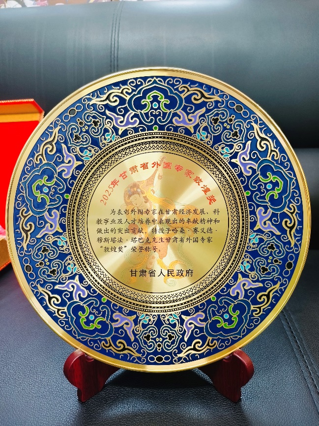 近日,我校威廉希尔体育官方网站阿拉伯语外籍教师哈桑·赛义德·穆斯塔法·塔巴克(埃及籍)荣获甘肃省人民政府对外表彰最高奖项——“敦煌奖”。