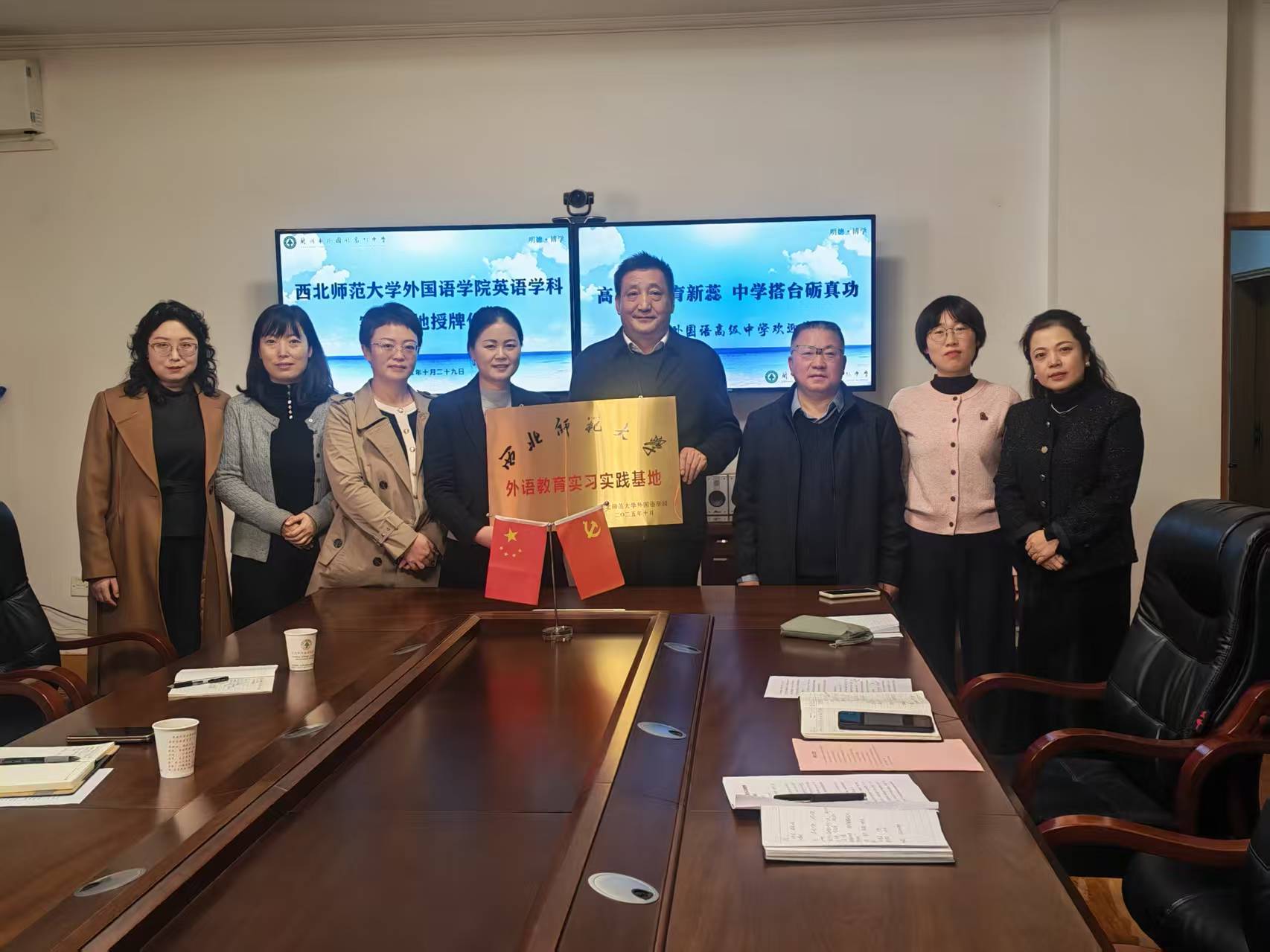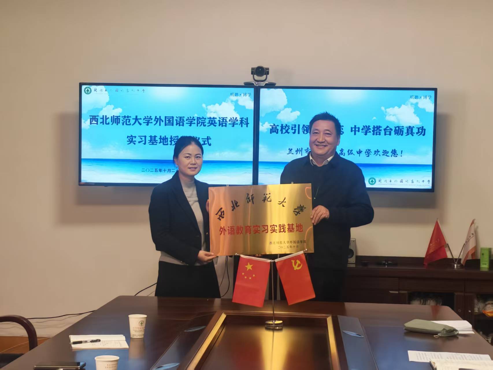 10月21日和10月29日,威廉希尔体育官方网站与兰州市第五十七中学和兰州市外国语高级中学教育实习实践基地挂牌仪式分别在两所中学举行。威廉希尔体育官方网站副院长陈倩、英语系副主任刘永娟、孙歆宇、靳洁,兰州市第五十七中学贠建珍副校长、姚侠副校长、彭文斌主任及教师代表、兰州市外国语高级中学蒋国鸿校长、杨玉良副校长、陈斌主任以及相关科目教师代表共同出席仪式,见证校地教育合作新起点的诞生。