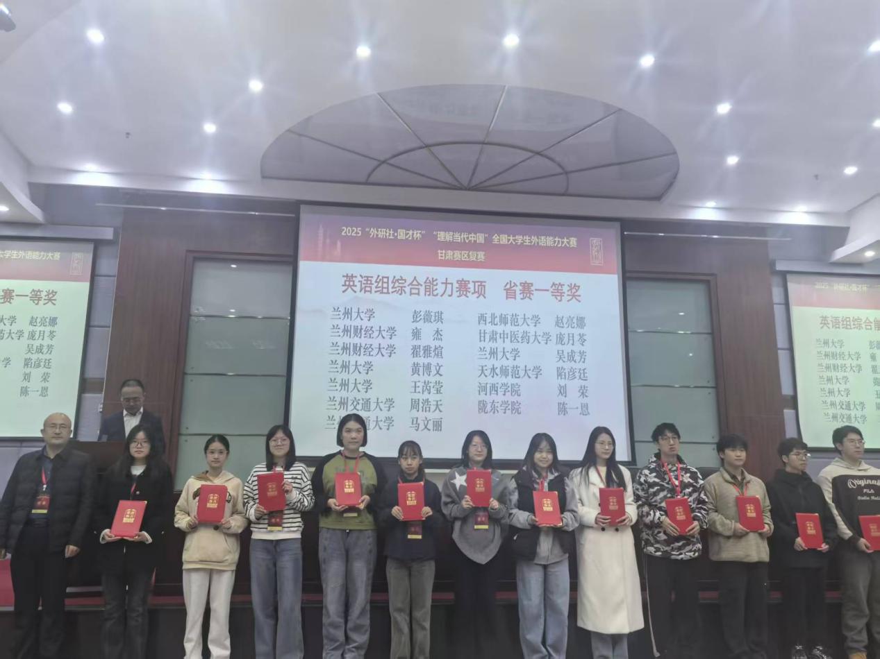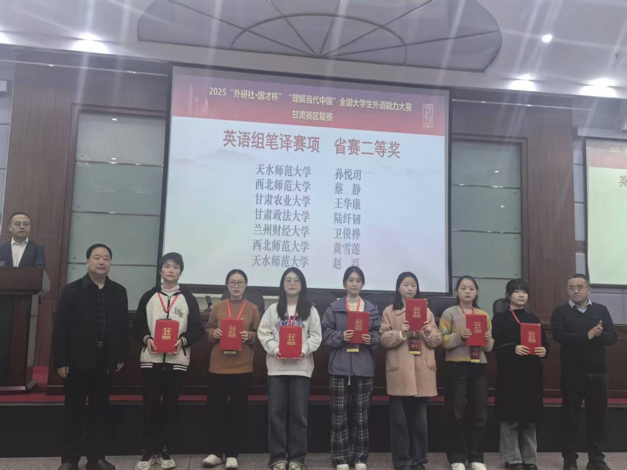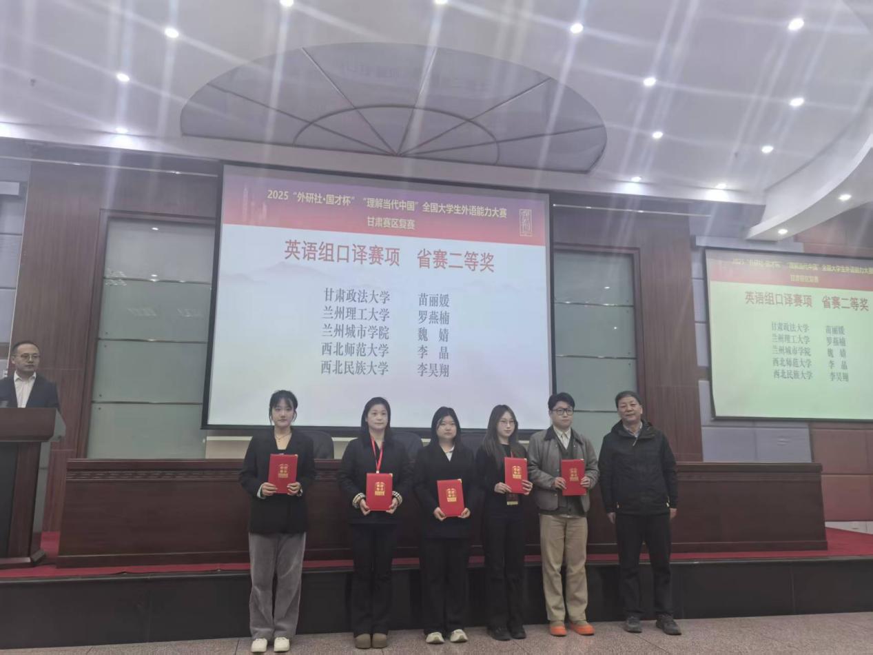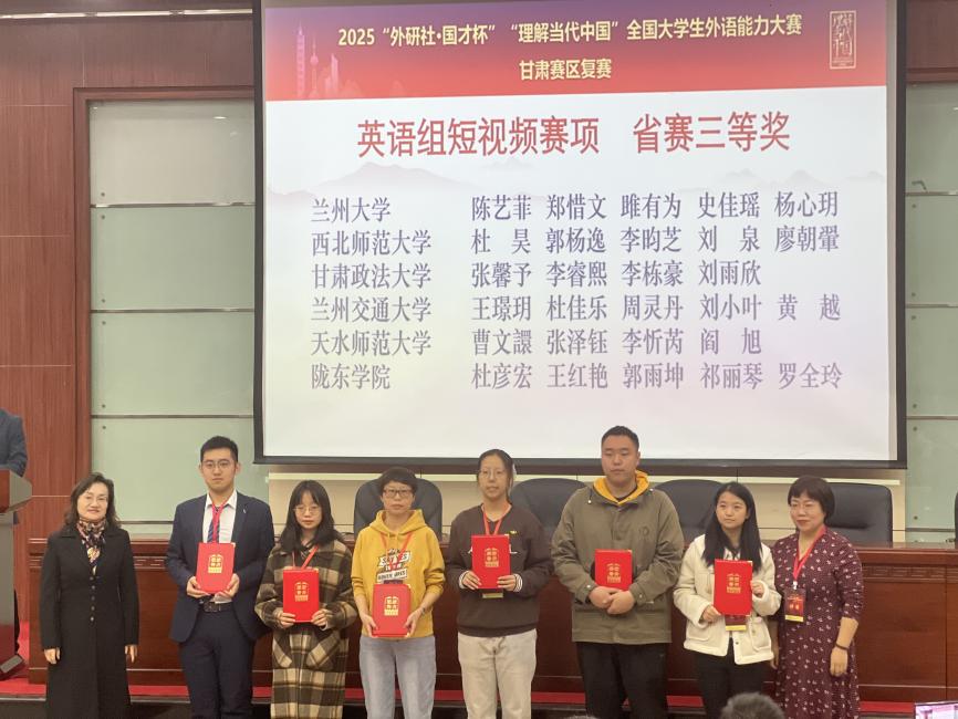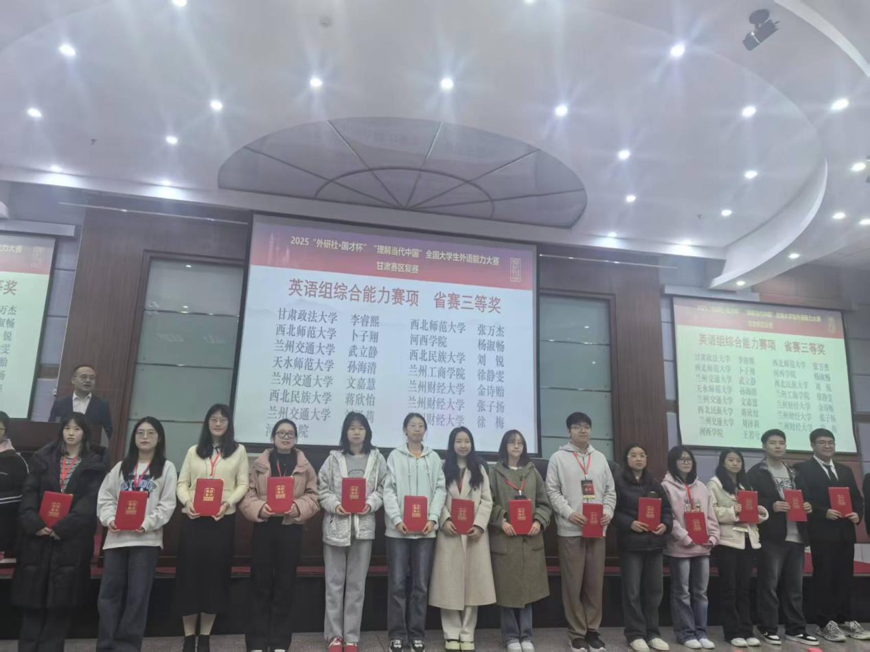 2025年11月1日,2025“外研社·国才杯”“理解当代中国”全国大学生外语能力大赛甘肃赛区复赛在河西学院成功举办。本次大赛由甘肃省教育厅主办,河西学院、甘肃省大学外语教学研究会、外语教学与研究出版社承办。大赛涵盖英语演讲、综合能力、口译、笔译及短视频五大赛项。全省二十余所学校遴选出优秀选手参加省级复赛,本次比赛我校15名同学参赛,14名同学获奖,获奖比例高达93%,学校同时获得比赛优秀组织奖。