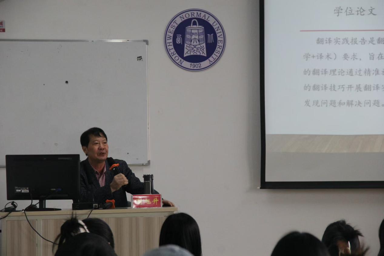 2025年11月14日上午,新疆大学谢旭升教授应学院邀请,为翻译硕士带来一场题为“翻译专业硕士学位论文基本要点解读”的专题讲座。